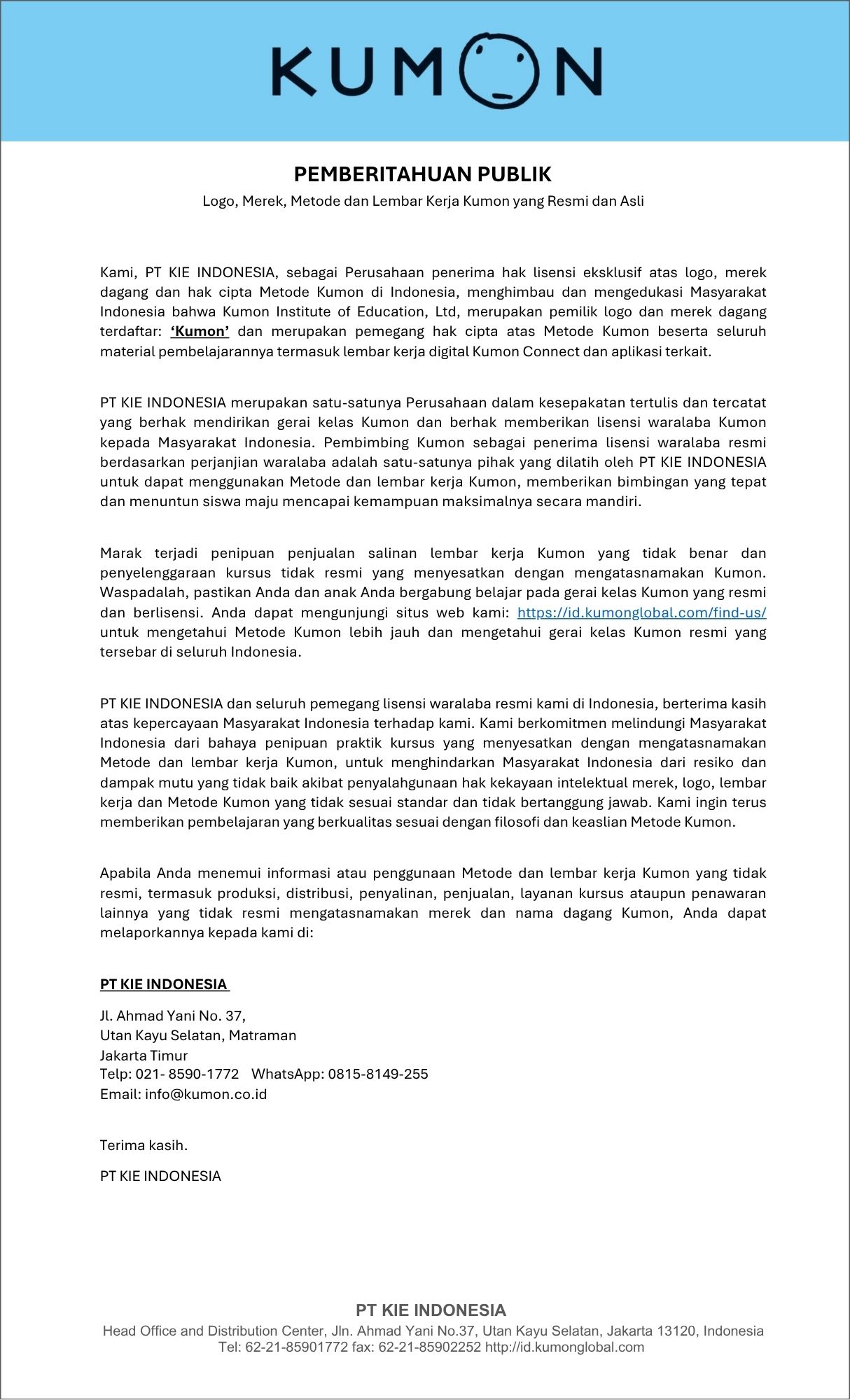 ⚠️ Waspada Penyalahgunaan Hak Kekayaan Intelektual Merek, Logo, Lembar Kerja dan Metode Kumon
